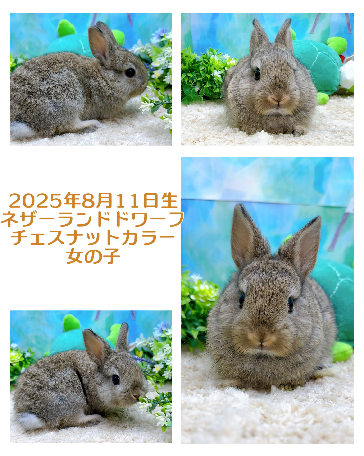 大人になった時のサイズ目安 体長:18〜22cm 体重:1〜1.7kg前後 販売価格:45000円(込) 別途食べている、牧草・ラビットフードを 購入していただきます。 購入時に加入できる、保険も取り扱っております |